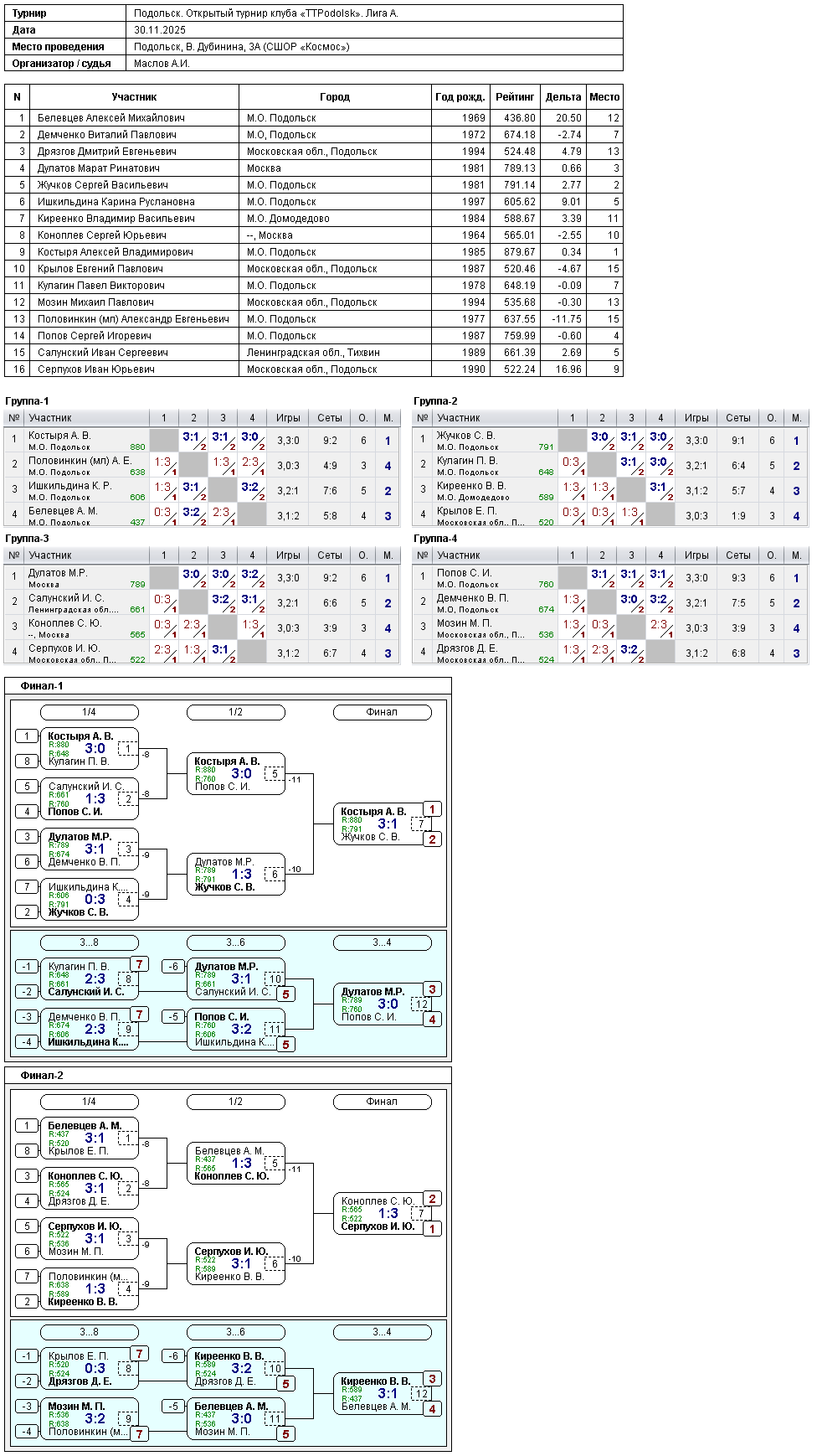 30 ноября 2025 г.Подольск, В. Дубинина, 3А (СШОР «Космос»)